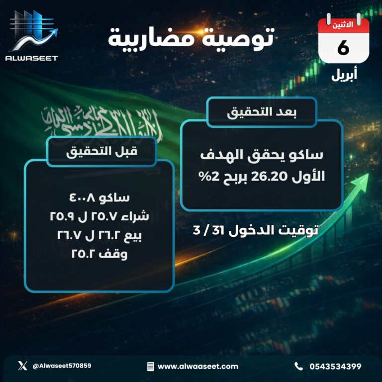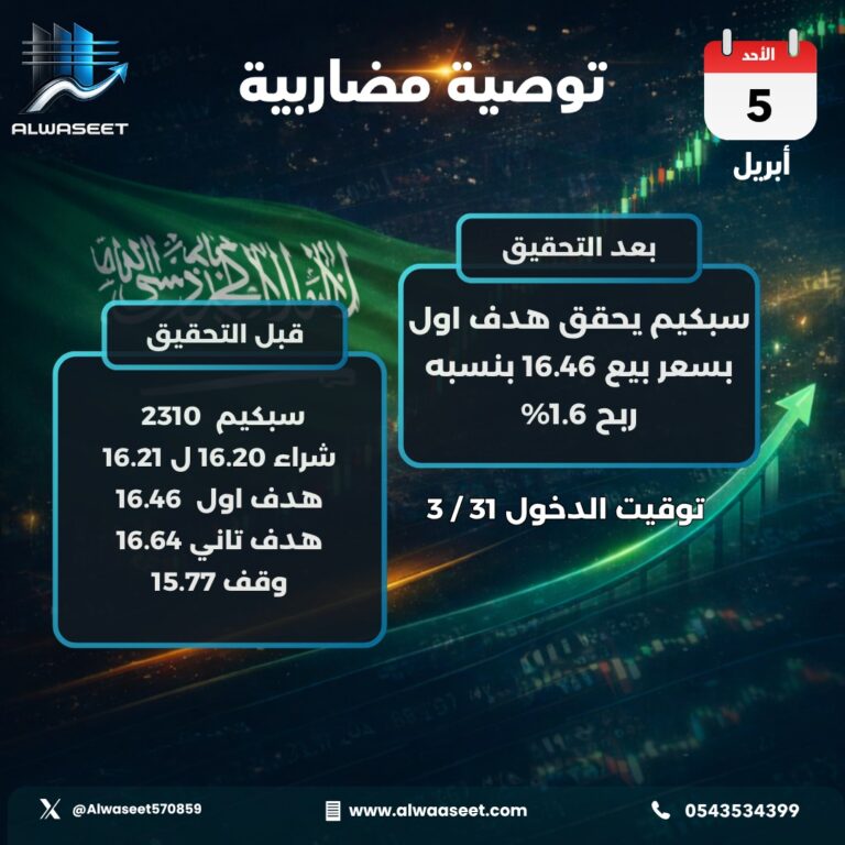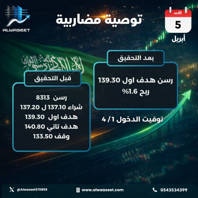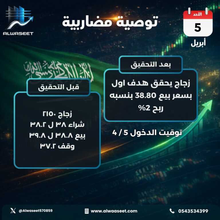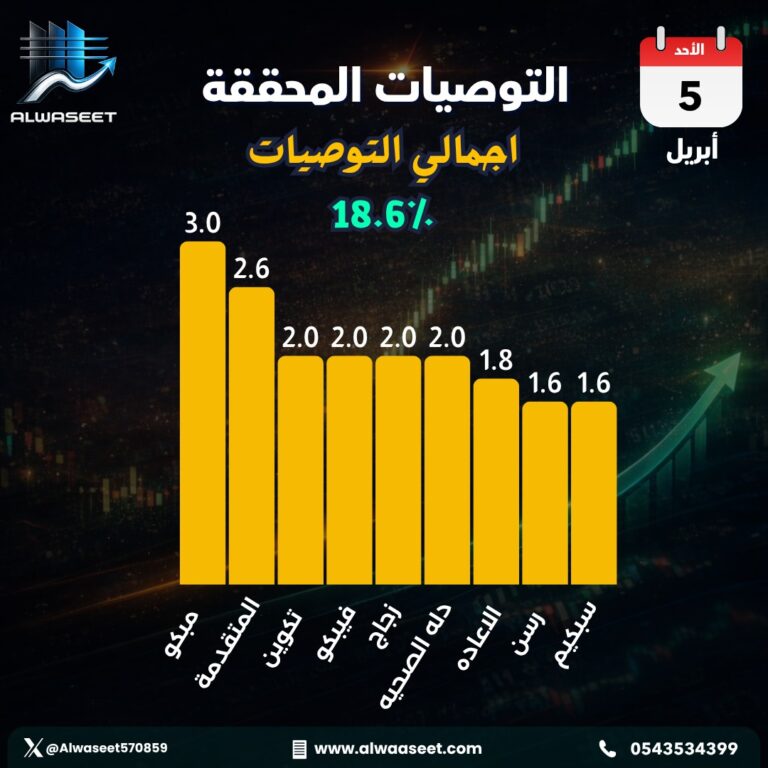 السوق السعودياجمالي التوصيات المحققه معانا اليوم بتاريخ الموافق 5 ابريلتوصيات الاسهم السعودية تاسي السوق_السعودي تاسي_تداول الاسهم_السعودية سوق الأسهم السعودية alwaaseet.com5 أبريل، 2026